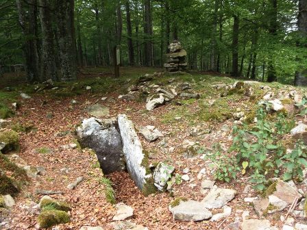 Aldapan gora noala gaurko lehen trikuharria ikusteko aukera dut, guztira bederatzi ikusiko ditut. Bidetik pixka bat atera eta hor dago, pagoen itzalpean, Beitzetako trikuharria.